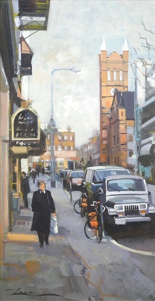 LOT 18 Oil on Board signed Indistinctly, 29 1/2" x 15 3/8", "Broughton at Broad Street". Estimate: $250 - $300 Sold For: $275 Auction Date: Tuesday, July 30 2024 at 4:00 PM