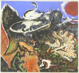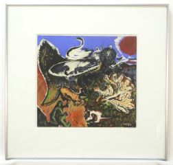 Mixed Media on Paper signed (James) Lindsay '91, 13 5/8" x 14 3/4", "West Coast Fantasy".