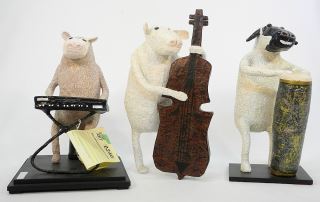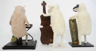 LOT 88 Papier Mache Sculpture by Denise Duncan, 13 1/2"h, "Sheep Band". Estimate: $100 - $150 Sold For: $150 Auction Date: Tuesday, July 30 2024 at 4:00 PM