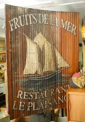 LOT 3 Decorative Sign "Fruits De La Mer Restaurant Le Plaisance". Estimate: $150 - $300 Sold For: $375 Auction Date: Tuesday, July 30 2024 at 4:00 PM