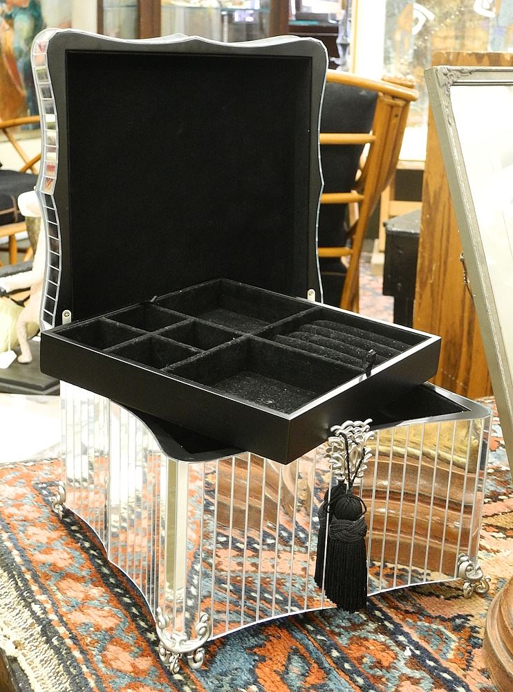 LOT 84 Bombay Co. Mirrored Jewelry Box, 6 7/8"h. Estimate: $50 - $60 Sold For: $35 Auction Date: Tuesday, July 30 2024 at 4:00 PM