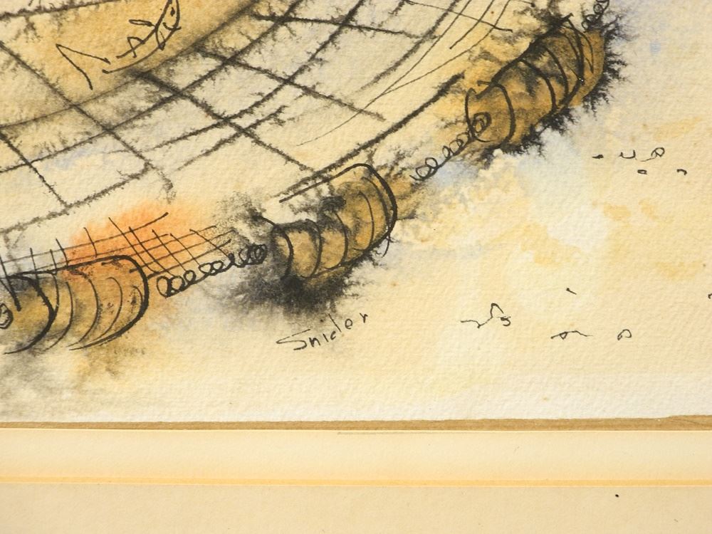 Ink & Watercolour signed Snider, 13" x 19 3/4", "Fisherman Handling Nets"
