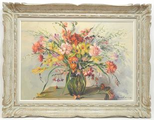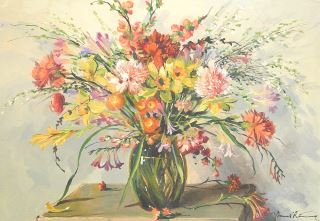 Oil on Canvas signed Indistinctly, 19" x 27 1/2", "Floral in Vase".