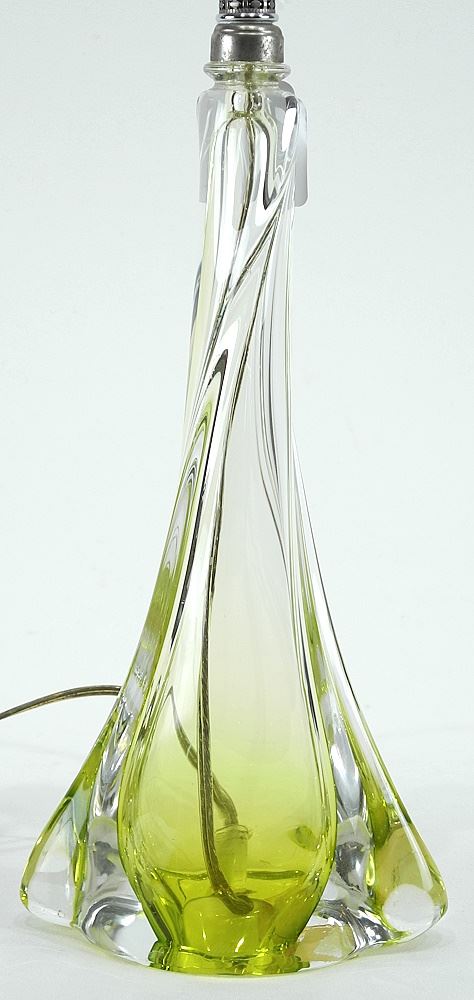 LOT 347 Val St. Lambert Crystal Table Lamp with Green Tint. Estimate: $80 - $100 Sold For: $130 Auction Date: Tuesday, January 21 2025 at 4:00 PM