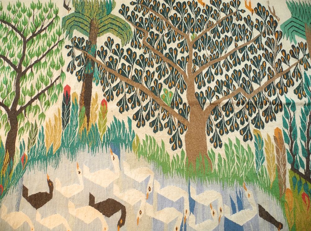 Egyptian Flatweave Pictorial Carpet, Approximately 7'9" x 5'.