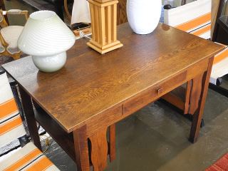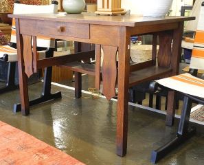 John C. Mundell & Co. Ltd. Elora, Ontario Oak Library Table, 29" x 42" x 26".