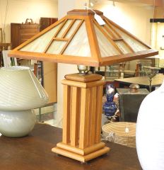 LOT 37 Prairie-Style Table Lamp with Iridescent Glass Shade, 21 3/4". Estimate: $60 - $100 Sold For: $170 Auction Date: Tuesday, January 21 2025 at 4:00 PM