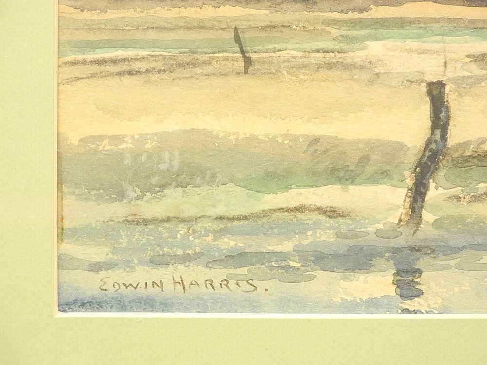 Watercolour signed Edwin Harris, 14 1/2" x 21 1/4", "Bosham on Sea" (toning noted).