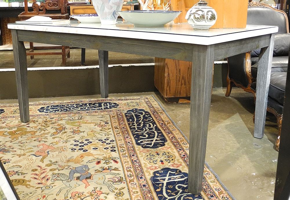 LOT 315 Marble Topped Ebonized Wood Bureau Plat, 64"w. Estimate: $100 - $200 Auction Date: Tuesday, January 21 2025 at 4:00 PM