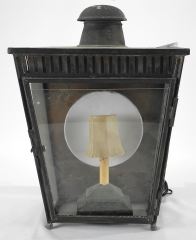Antique Galvanized Metal Reflecting Lantern, 21" x 16 3/8" x 11 1/2" (needs wiring).