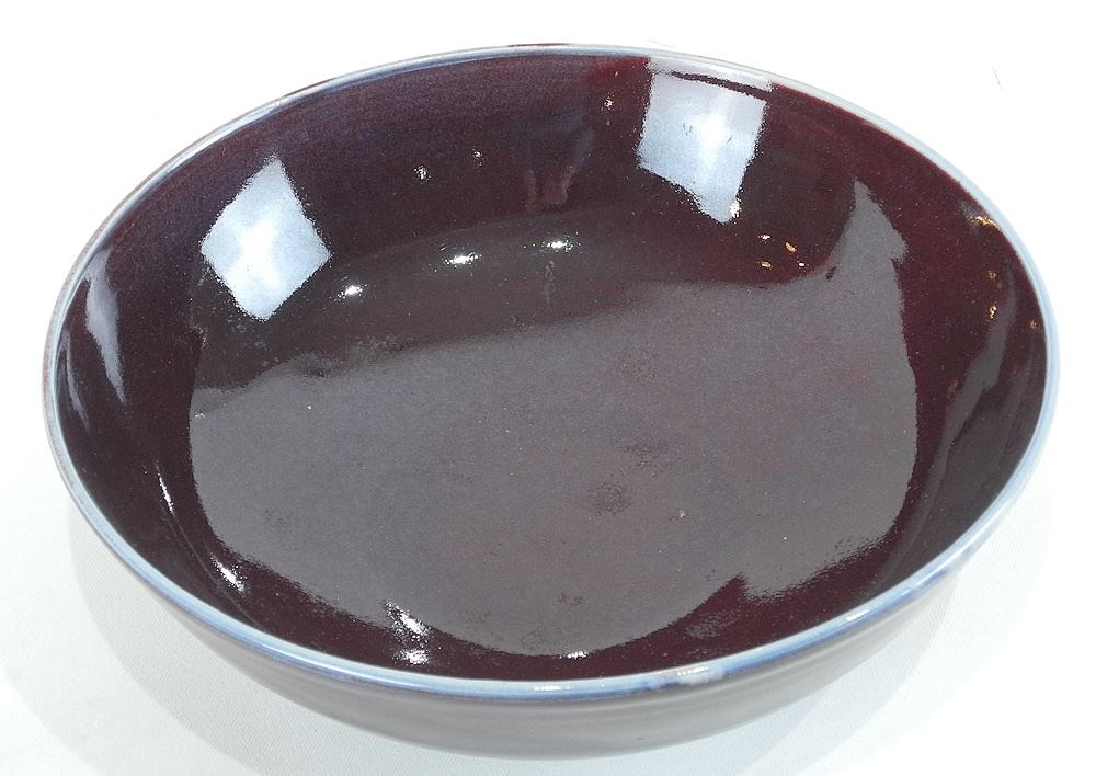 Porcelain Bowl with Langyao Glaze Monogram EOF'98, 3 3/4" x 12 1/2" Diameter.