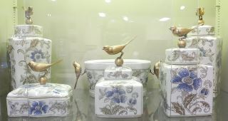 Porcelain Garniture Mounted with Gilt Metal Birds.