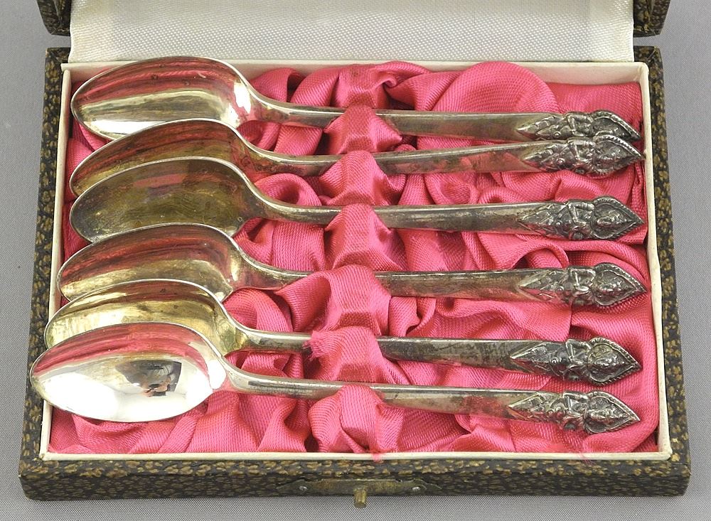 6 Thai Sterling Coffee Spoons in Case, 21g.