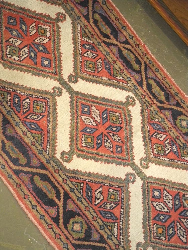 LOT 36 Iranian Hand Knotted Wool Runner, Approximately 9'7" x 2'10". Estimate: $100 - $200 Sold For: $150 Auction Date: Tuesday, March 18 2025 at 4:00 PM