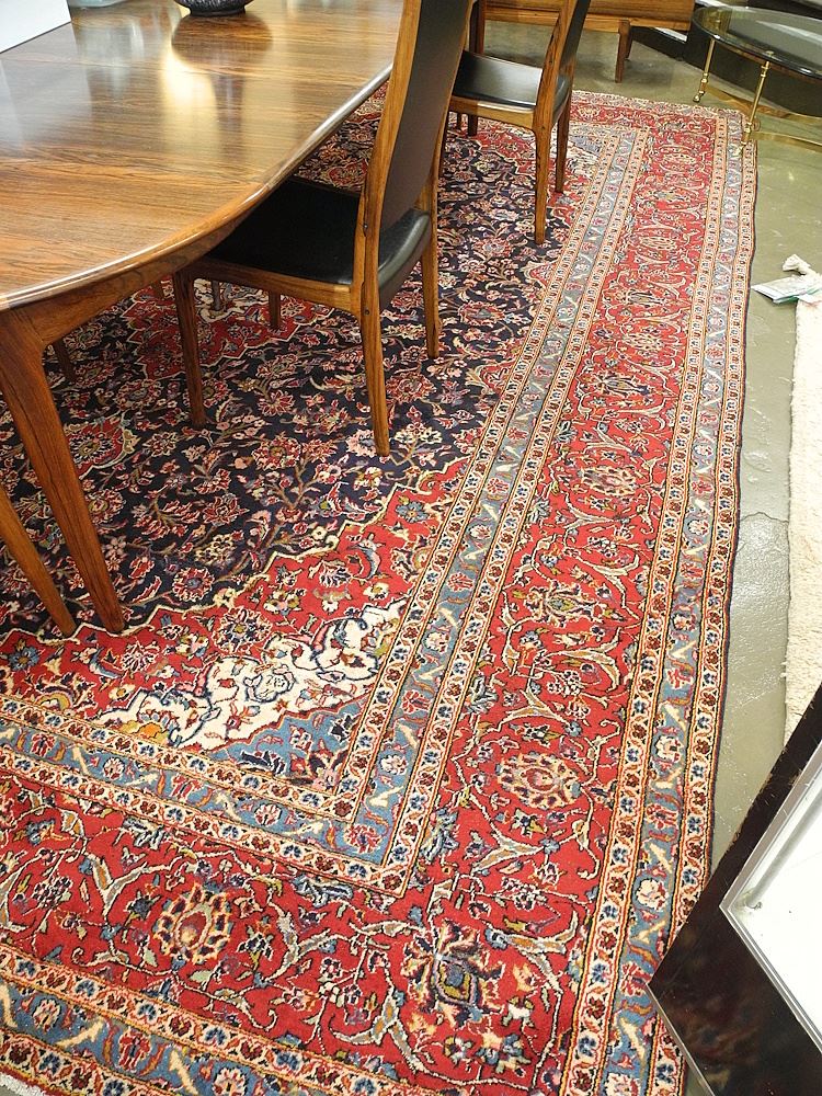 Kashan Carpet Approximately 13'11" x 9'7" (low pile/moth damage)