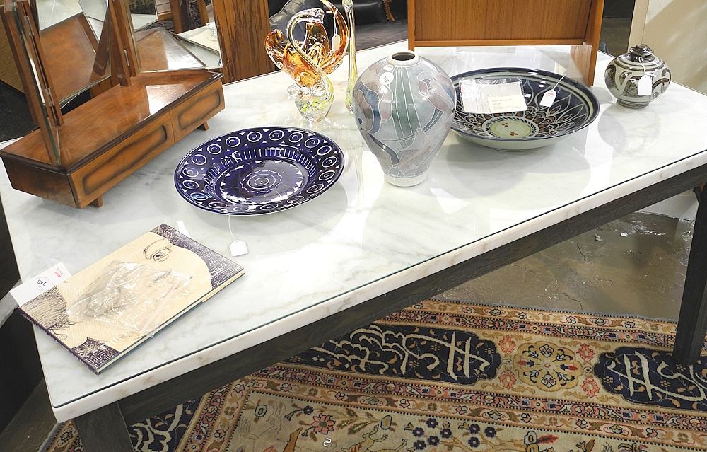 LOT 144 Marble Topped Contemporary Desk or Bakers Table, 64"L. Estimate: $100 - $200 Sold For: $250 Auction Date: Tuesday, March 18 2025 at 4:00 PM