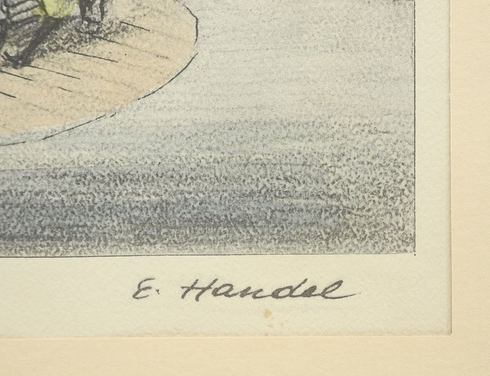 Lithograph signed E. Handel, 8 3/4" x 10 3/8", "Turn Table at Powell St ".