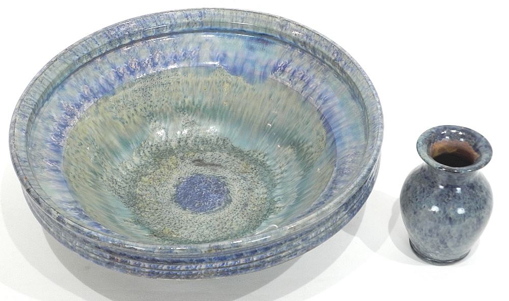 Earthenware Bowl (13 1/2" diam./ cracked) & Vase by Axel Ebring Vernon BC.