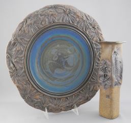 Stoneware Dish & Vase with Impressed Mark of Ed Drahanchuk, 13" Diam/8 3/4"h.