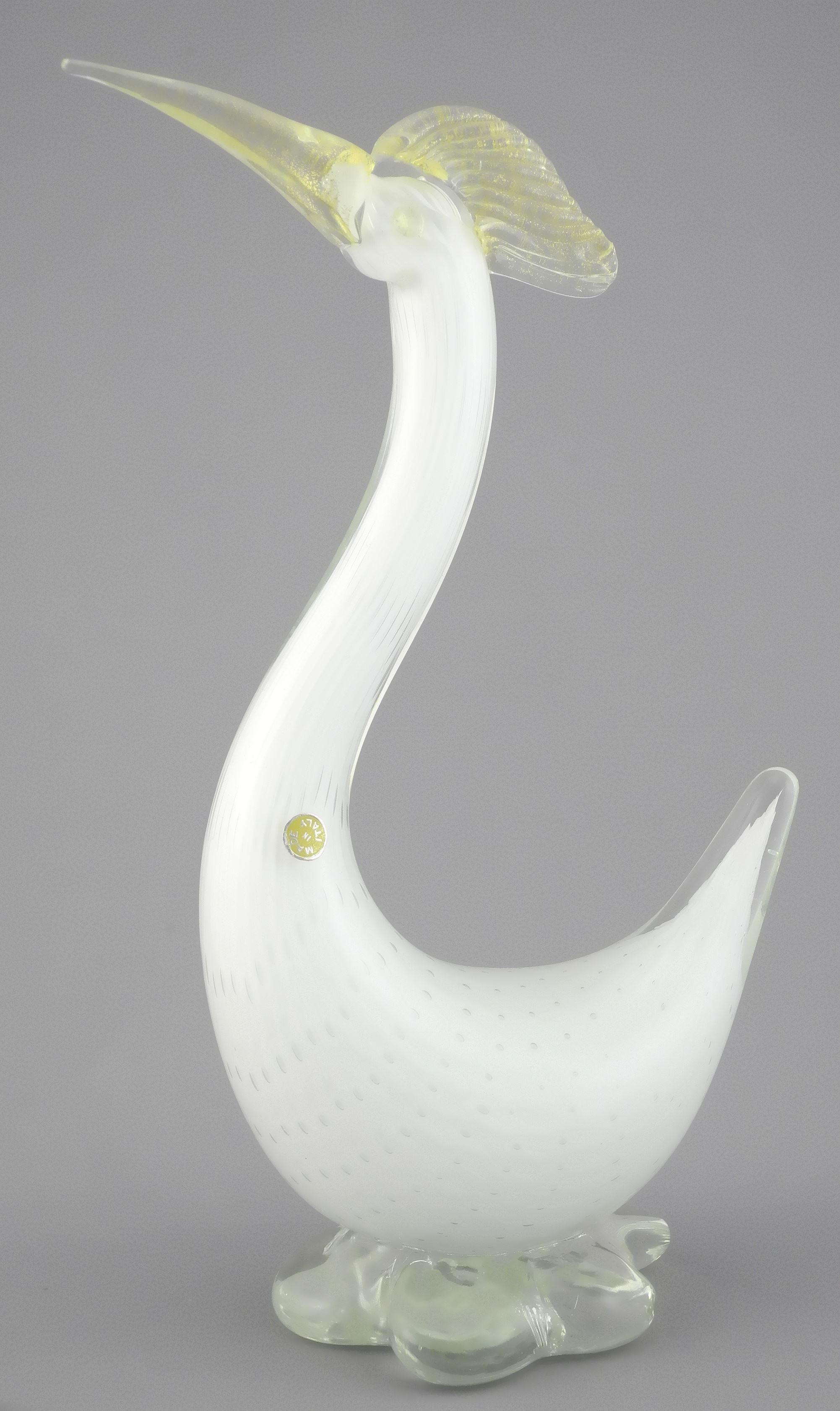 Murano Glass Bird with Raised Head, 12 1/2"h.