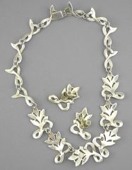 Mexican Sterling Silver Necklace & Earrings, 15"L, 67.8g.