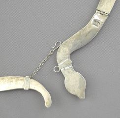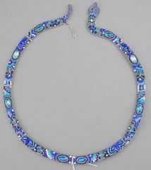 LOT 212 Mexican Silver Blue Beadwork Snake Necklace, 6 3/4" Diam., 41g. Estimate: $100 - $150 Sold For: $180 Auction Date: Tuesday, March 18 2025 at 4:00 PM