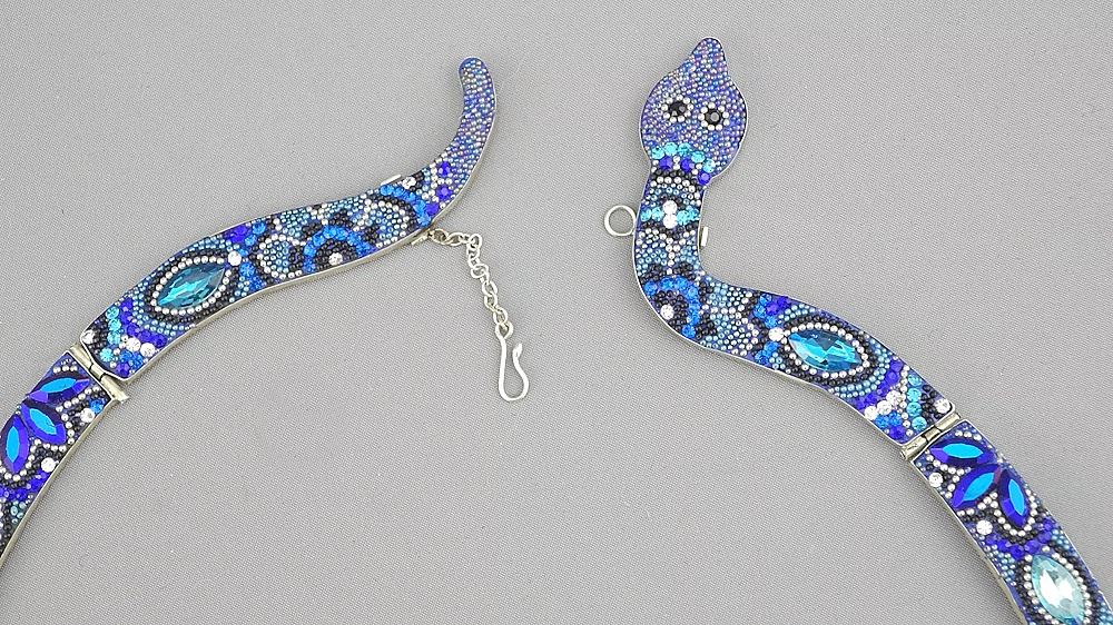 Mexican Silver Blue Beadwork Snake Necklace, 6 3/4" Diam., 41g.