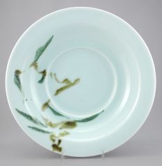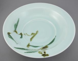 Underglaze Celadon Bowl Impressed Harlan House 1985, 13 7/8" Diameter.