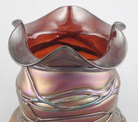 LOT 275 Loetz-Style Austrian Iridescent Art Nouveau Vase. Estimate: $120 - $180 Sold For: $160 Auction Date: Tuesday, March 18 2025 at 4:00 PM