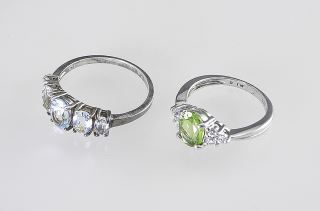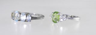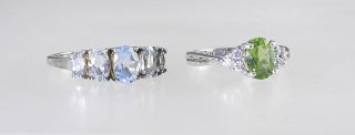 LOT 224 Two RJ Sterling Silver (marked 925) Aquamarine & Peridot Ring, Size 6 & 9, TW 5.4g. Estimate: $60 - $100 Sold For: $110 Auction Date: Tuesday, March 18 2025 at 4:00 PM