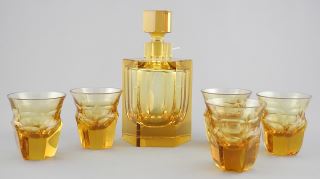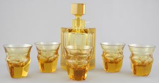 LOT 5 Moser Six Piece Liqueur Decanter Set , signed, 2 3/4 - 6"h (one cup chipped). Estimate: $60 - $100 Sold For: $60 Auction Date: Tuesday, March 18 2025 at 4:00 PM