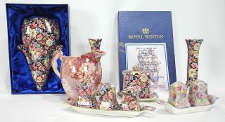 LOT 20 Lot of Chintz Wares: Royal Winton Florence & Stratford, 5 items incl. Wall Pocket with COA Estimate: $200 - $300 Auction Date: Tuesday, March 18 2025 at 4:00 PM