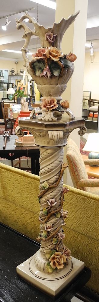 LOT 202 Capo di Monte Ewer on Stand, TH 44 1/2". Estimate: $50 - $70 Sold For: $100 Auction Date: Tuesday, March 18 2025 at 4:00 PM