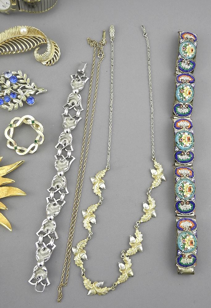 LOT 119 Collection of Costume Jewelry: signed / Micro Mosaic / Rhinestone. Estimate: $50 - $100 Sold For: $60 Auction Date: Tuesday, March 18 2025 at 4:00 PM