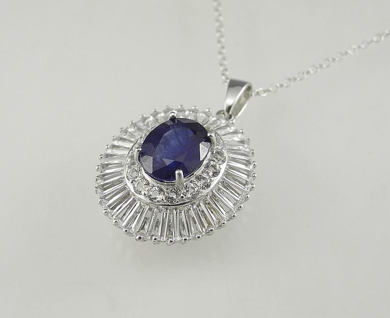 Sterling Silver (marked 925) Mazola Sapphire & Zircon Necklace, 17"L
