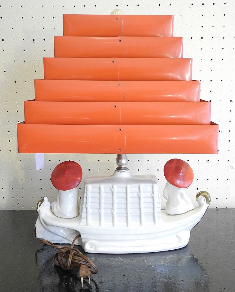LOT 254 1950's Ceramic Table Lamp with Pyramidal Shade, 18"h. Estimate: $50 - $60 Sold For: $100 Auction Date: Tuesday, March 18 2025 at 4:00 PM