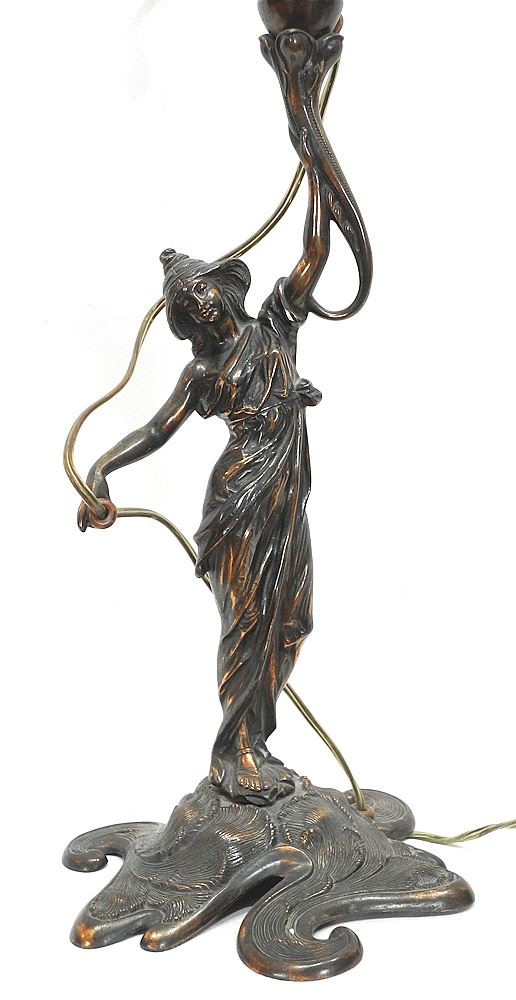 Copper Finish Art Nouveau Figural Table Lamp with Glass Shade, 21 3/4" h.