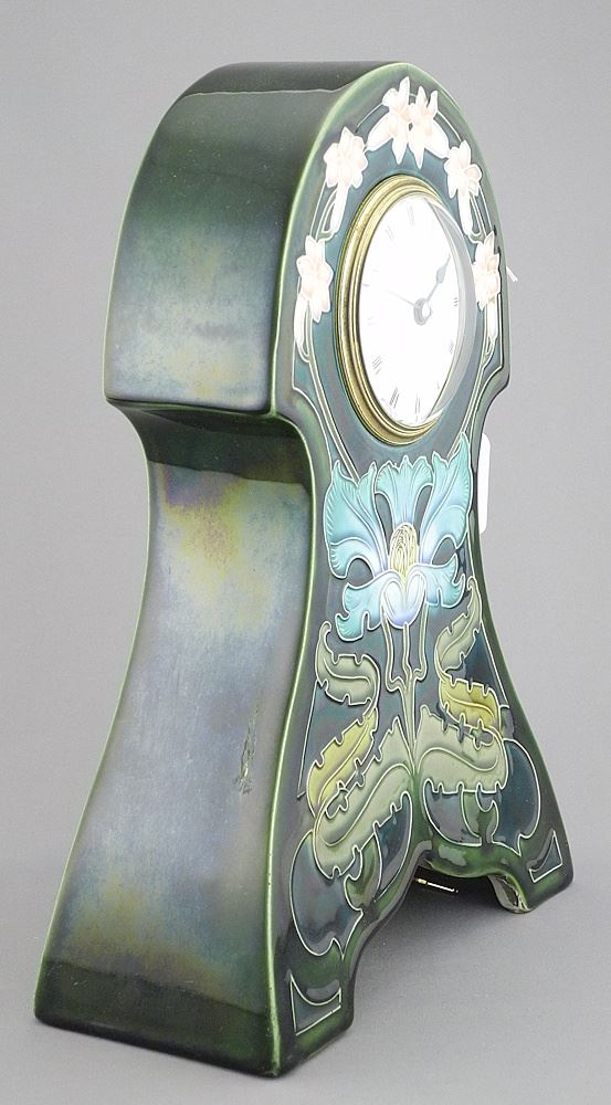 Art Nouveau Ceramic Table Clock Impressed Q578, 11 1/2"h (edge scratch noted).