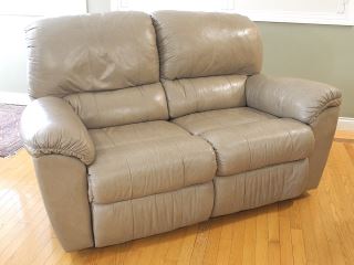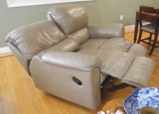 Brown Leather Loveseat with Independent Reclining Seats, 63"w