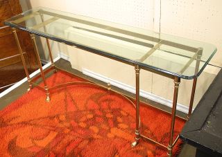 LOT 100 Brass & Glass Console Table, 59"w. Estimate: $50 - $60 Sold For: $20 Auction Date: Tuesday, May 13 2025 at 4:00 PM