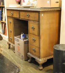 LOT 194 Vintage Walnut Pedestal Desk, 29 1/2"h. Estimate: $50 - $100 Sold For: $10 Auction Date: Tuesday, May 13 2025 at 4:00 PM
