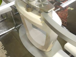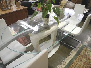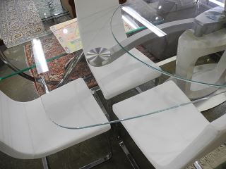 LOT 237 Calligaris Contemporary Glass Leather & Chrome Dining Room Suite. Estimate: $400 - $600 Sold For: $1,200 Auction Date: Tuesday, May 13 2025 at 4:00 PM