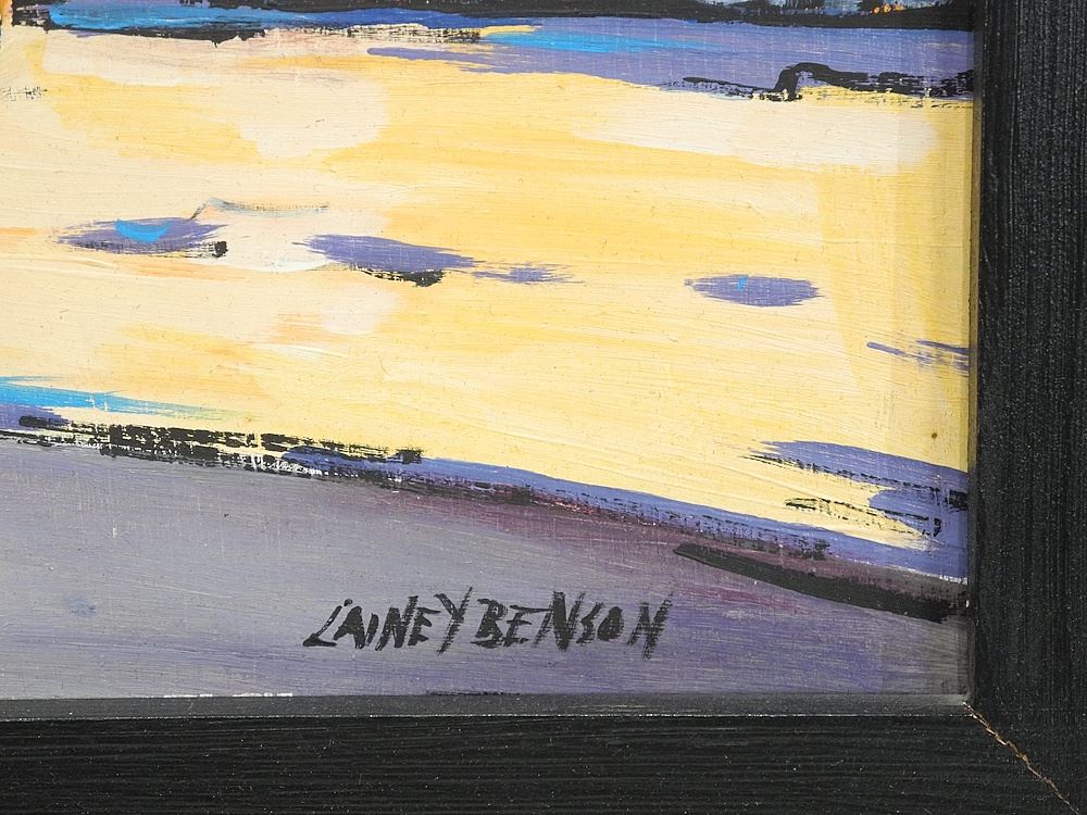 Two Oil on Board signed Lainey Benson, Larger 11 x 14", "Street Scene" & "Inlet Town".