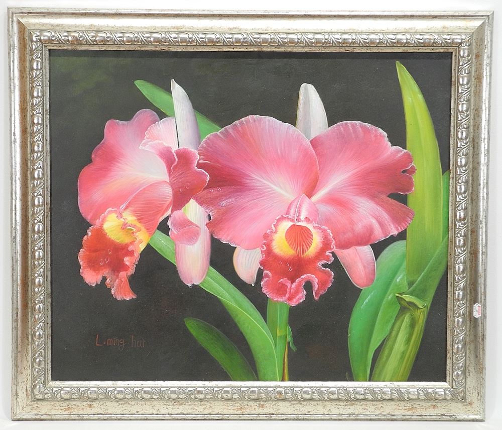 LOT 117 Two Oil on Canvas signed Hui & You, 19 1/2 x 22 1/2", "Exotic Flowers". Estimate: $50 - $150 Sold For: $110 Auction Date: Tuesday, May 13 2025 at 4:00 PM