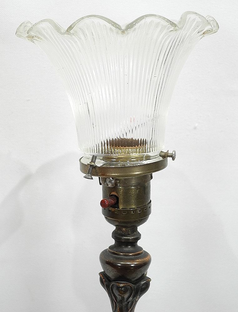 LOT 13 Copper Finish Art Nouveau Figural Table Lamp with Glass Shade, 21 3/4" h. Estimate: $100 - $200 Sold For: $200 Auction Date: Tuesday, May 13 2025 at 4:00 PM