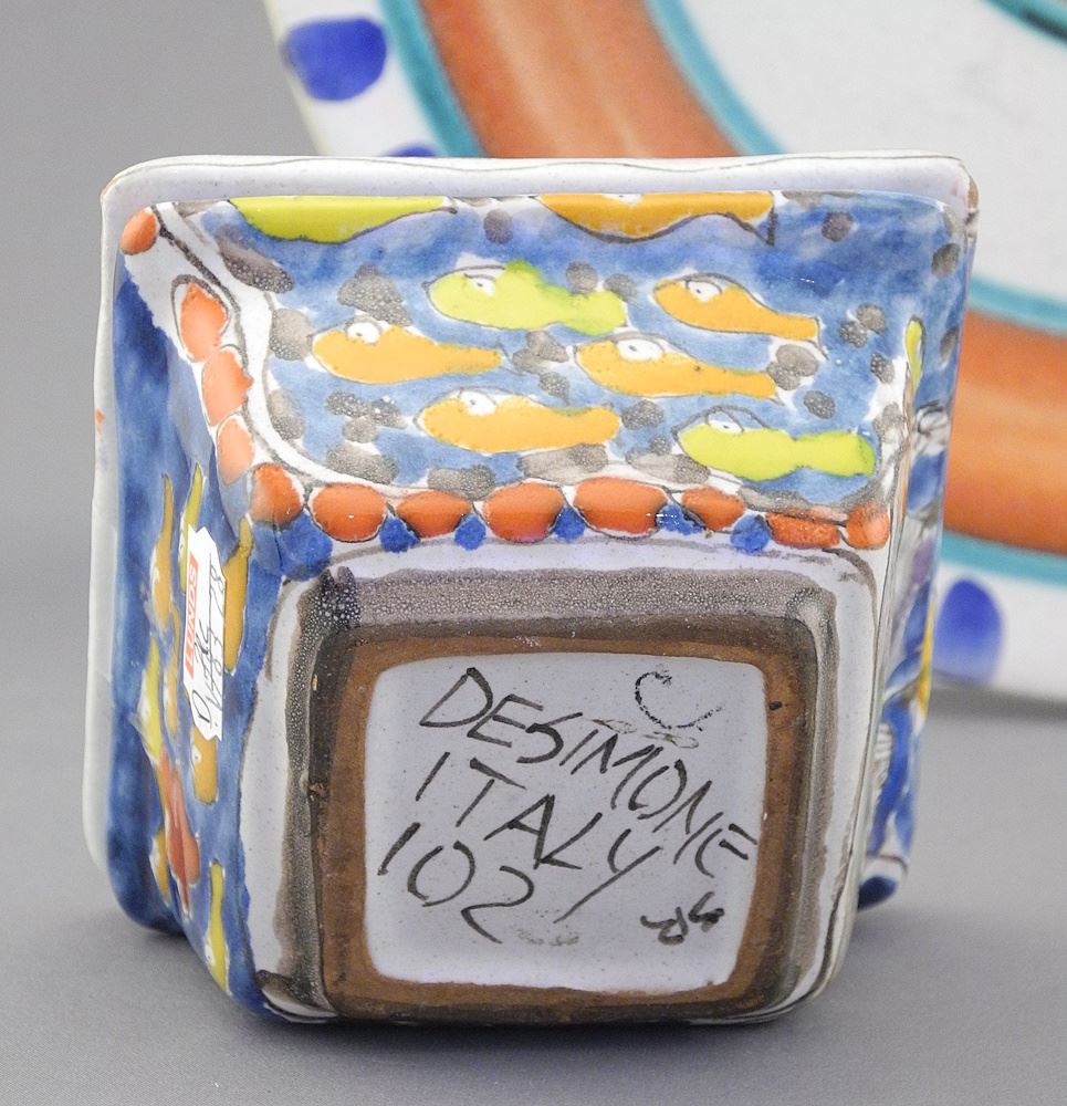 Two Desimone Italy Pottery Items: Dish (9 7/8" diam.) & Box.