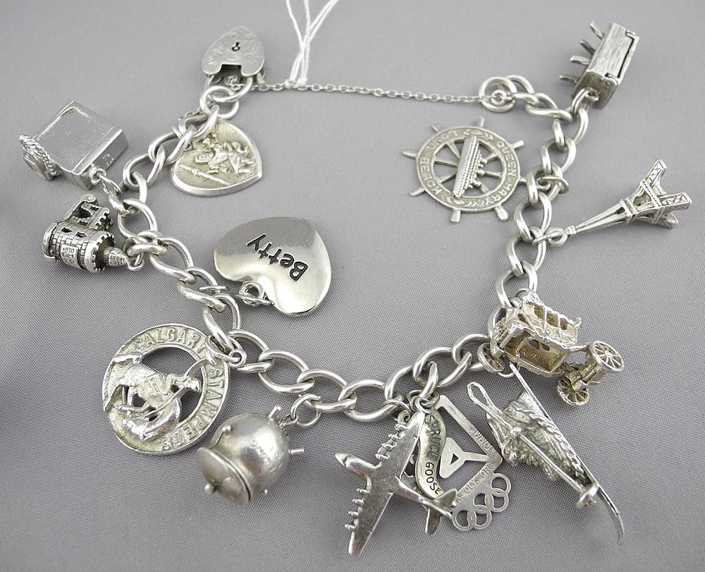Silver (marked) Cuff Bracelet(15.2g) & Silver Charm Bracelet (some sterling charms), 57.8g.
