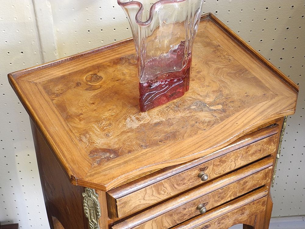 Pair of Louis XVI-Style Banded & Brass Mounted Side Tables, 30"h.
