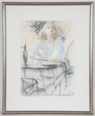 LOT 65 Mixed Media on Paper signed Jack Wilkinson'89, 12 1/4" x 8 7/8" , 'Woman at Table'. Estimate: $60 - $100 Auction Date: Tuesday, May 13 2025 at 4:00 PM