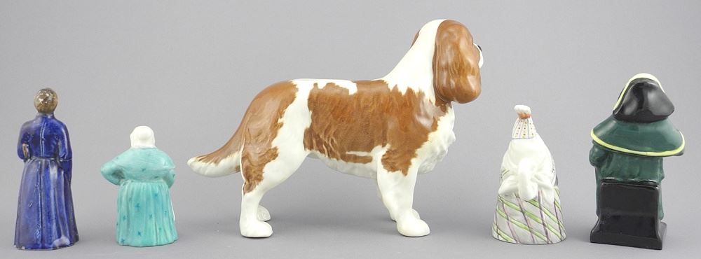 LOT 305 Beswick Spaniel (back leg repaired) with 2 Worcester Candle Snuffers, Bumble, etc Estimate: $50 - $70 Sold For: $60 Auction Date: Tuesday, May 13 2025 at 4:00 PM